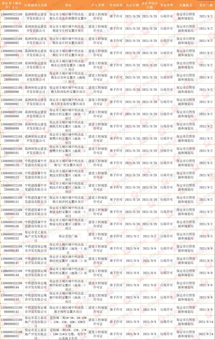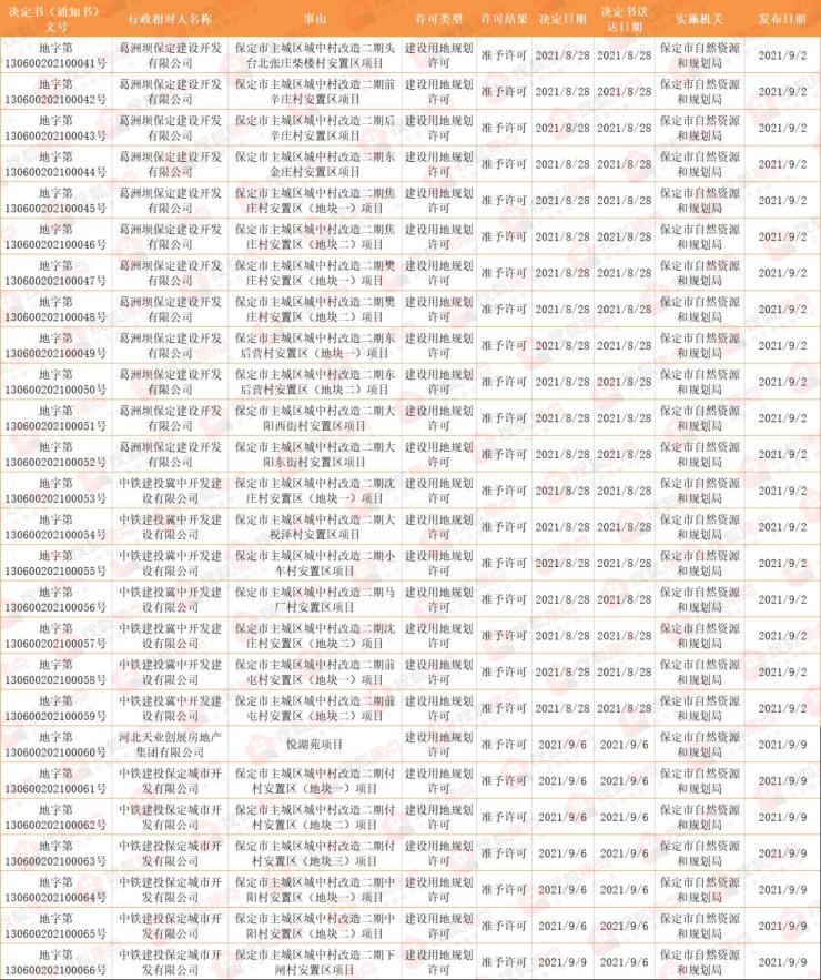 9月,保定市主城区房地产市场共发布27个建设用地规划许可证下发信息,城中村改造二期多个村庄安置区获证,包含头台北张庄柴楼村、前辛庄村、东金庄村等。