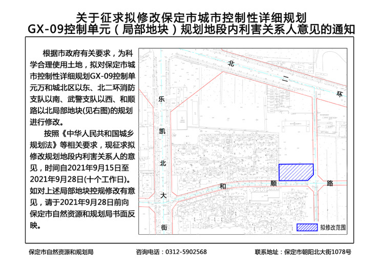3、公告丨保定万和城北区以东、和顺路以北局部地块规划修改