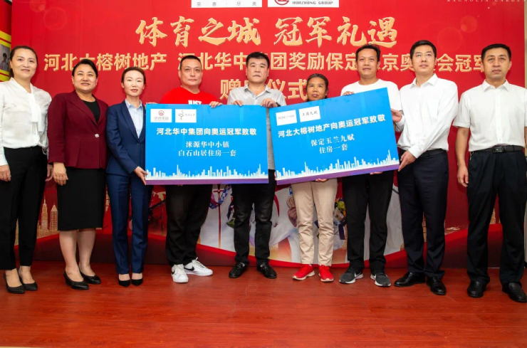 9月23日,河北大榕树地产、河北华中集团分别向4位保定籍奥运会冠军各奖励商品住房一套,对他们的拼搏精神表达敬意。