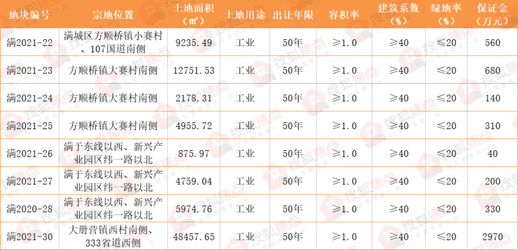 满城区9月份成交地块详情: