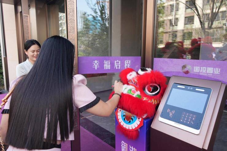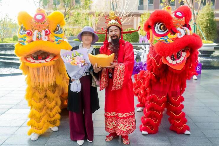 交付现场,工作人员以专业、热情的服务迎接每一位业主的到来。在精心设计的交房流程引导下,业主们有序完成资料审核、钥匙领取等环节。仪式感十足的交付环节成为亮点:业主摇响归家铃铛,接过祝福鲜花,与家人合影留念,记录温馨时刻;更有“鱼跃龙门”放鱼仪式、舞狮点睛、财神送福及派发吉祥红包等环节,寓意吉祥如意、财源滚滚。在“开门大吉”的传统仪式中,业主亲手打开新家大门,象征幸福生活的正式开始。