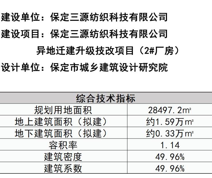 保定三源纺织异地迁建升级技改项目建设工程规划公示