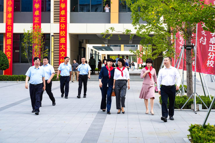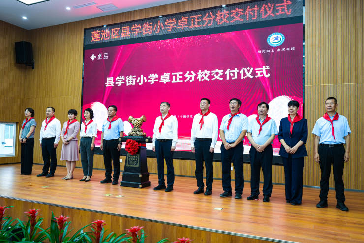 踏着秋日的脚步,保定市人大常委会副主任、莲池区委书记刘晓鹏、卓正控股集团执行董事 总裁辛群来、莲池区委常委 区委办主任魏栋、莲池区政府副区长刘爽、卓正控股集团监事长 卓正控股集团有限公司总经理辛红芳、卓正控股集团董事、河北卓正实业集团有限公司执行董事/总经理燕小东、莲池区教体局局长李艳生、卓正控股集团董事、河北卓正房地产集团有限公司执行董事/总经理刘小兵、卓正控股集团董事、保定卓正房地产开发有限公司总经理夏铁燕、县学街小学教育集团总校长白少红等领导一行来到莲池区县学街小学卓正分校参加交付仪式,与县学街小学教育集团师生代表、卓正控股集团员工共同见证这一具有历史意义的时刻。