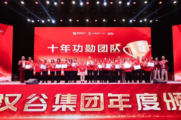 汉谷集团于2024年成立“房速卖协会”和“新房协会”,组织有想法、有能力又身处一线的家人们,一起来提出建议、书写规则,通过协会理事会带动协会会员,促成协会业务的良性自循环。颁奖盛典上,两大协会理事登台,立下2025发展宣言,平董上台授予开拓者奖牌,未来我们一起共建。