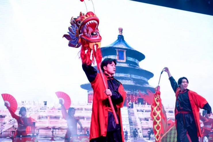 在一阵阵激情的音乐鼓点中,舞蹈演员挥舞着“龙头”上台,《天地龙鳞》为2025年颁奖盛典正式拉开序幕。