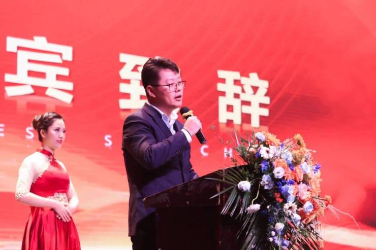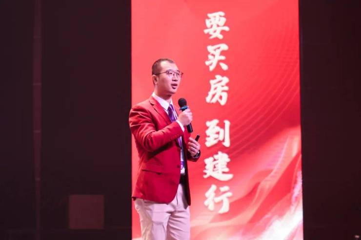 建设银行保定分行副行长姬巍上台致辞。姬行长首先向大家致以美好的新年祝福,他谈到,汉谷地产与建设银行的合作源远流长,自08年开始至今已历经17个年头,这期间我们开拓进取,携手共进,为保定老百姓住有所居,和保定市房地产经纪业务的可持续发展贡献了重要的意义。展望未来,我们还有巨大的合作空间,期待双方继续加深合作,共同努力,不懈追求,取得更加辉煌的成就。