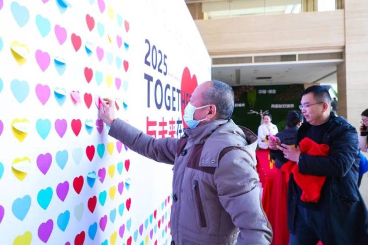 9日中午,全城的家人汇聚电谷酒店,在酒店大堂亲手写下自己的新年祈愿,贴在心愿墙上。来到会场,台上乐队火热开唱,更有多才多艺的家人登台献唱,台下还有喜气财神随时互动,现场氛围很快点燃。