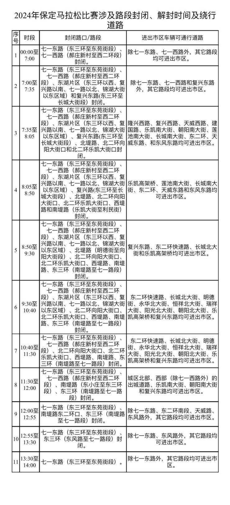 通告丨2024保定马拉松比赛期间对部分道路采取临时交通管制