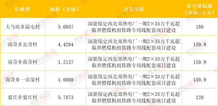 征地区域均位于保定主城区西北部,征地用途均为深能保定西北郊热电厂一期2×35万千瓦超临界燃煤机组铁路专用线配套项目建设。【征地详情 见下图】