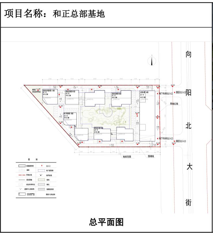 河北和正人力科技有限公司拟在高新区恒源路南、向阳北大街西位置,建设和正总部基地项目。建设单位已委托设计单位按城市规划要求、相关规定、建筑设计规范等进行方案设计,现将总平面图及主要效果图予以公示。