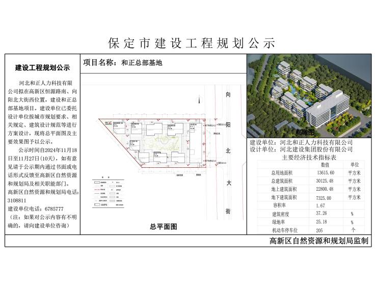 保定和正总部基地项目建设工程规划公示