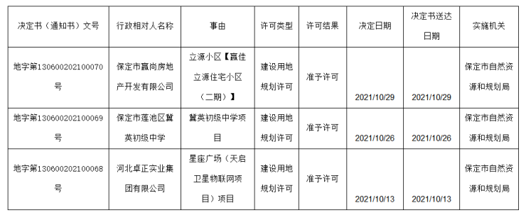 证件丨保定赢佳立源、星座广场等项目获建设用地规划许可