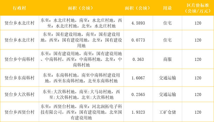其中,贤台乡水北庄村征地70亩,征地用途为住宅用地。