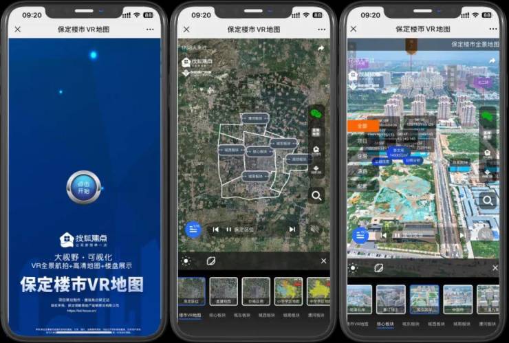 搜狐焦点保定站制作的保定楼市VR地图目前主要收集、整理保定主城区在售楼盘,可以通过实景展示在售楼盘的区域分布