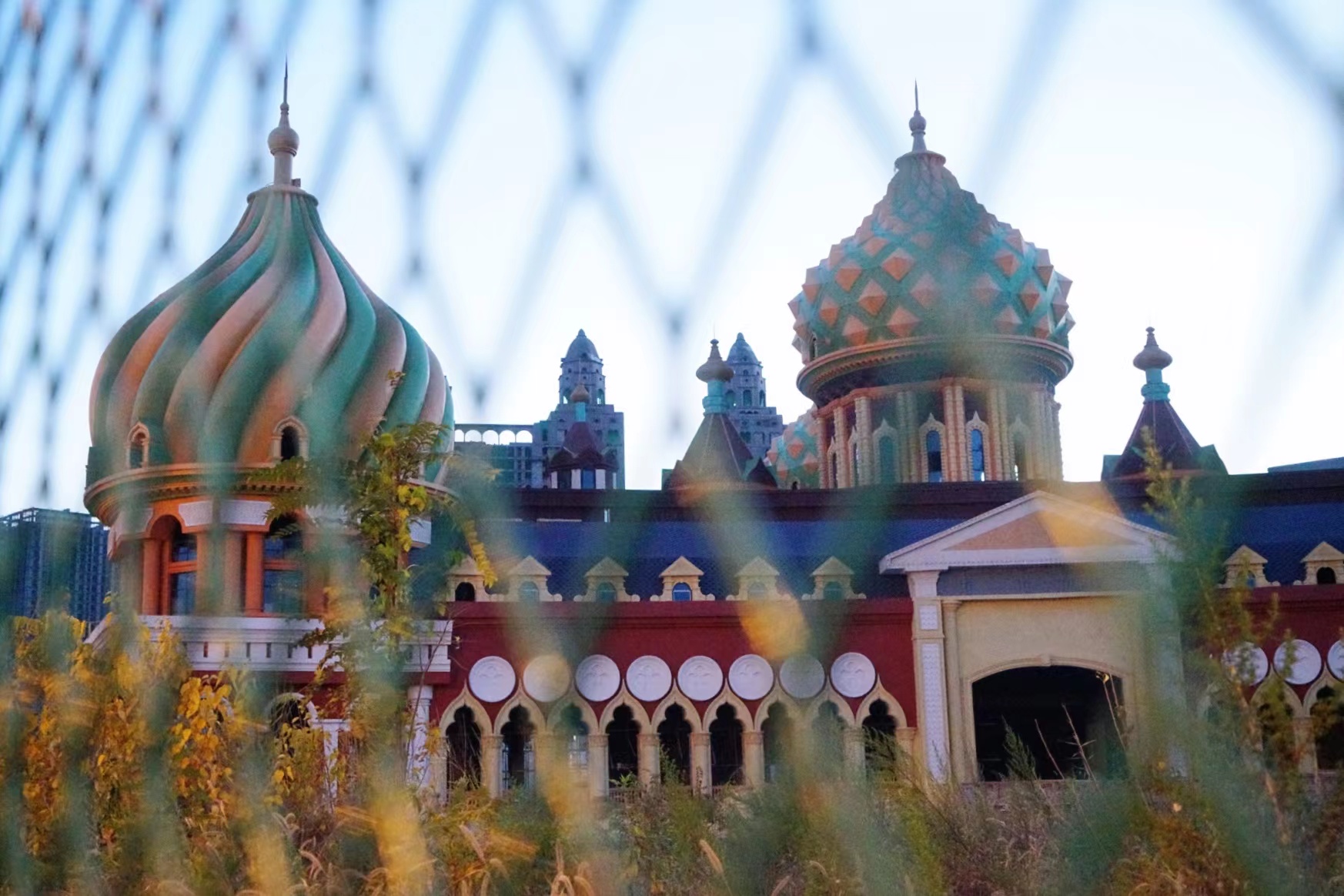 从石家庄新火车站出发,向南出发两公里,便能看到一座魔幻的欧式建筑群。正面望去,与华丽的俄罗斯教堂颇有神似,五颜六色的外墙、古典式雕塑装饰、巨型圆拱门......若初来乍到,可能以为这是“旅游景点”,毕竟,时不时有网红来打卡拍照。