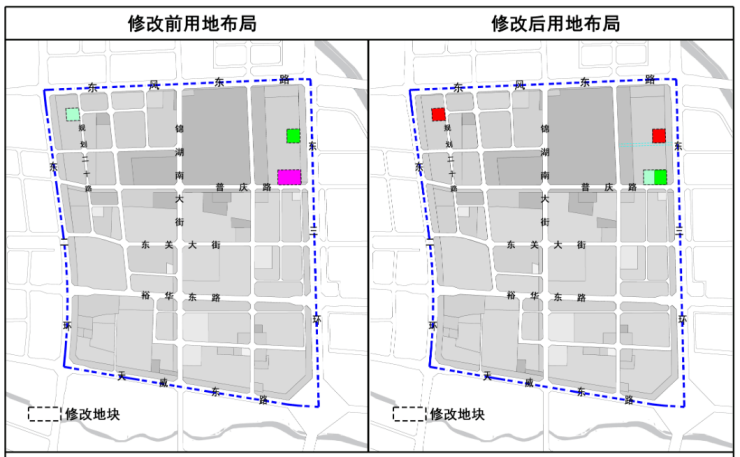 (1)将规划二十路西侧广场用地调整为商业用地: