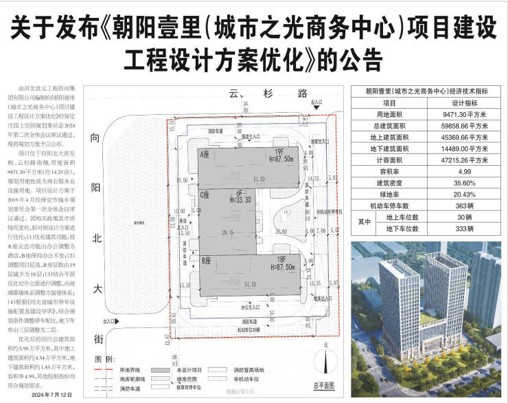 由河北世元工程咨询集团有限公司编制的《朝阳壹里(城市之光商务中心)项目建设工程设计方案优化》经保定市国土空间规划委员会2024年第二次全体会议审议通过,现将规划方案予以公布。