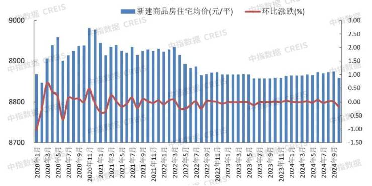 图:2020年-2024年10月保定新建商品住宅销售均价及环比走势