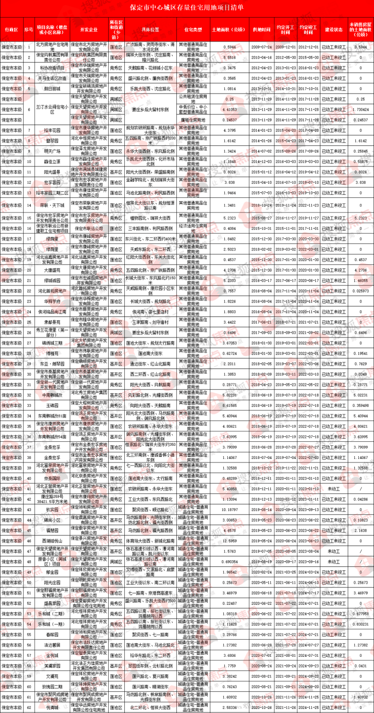 最新库存!保定市中心城区存量住宅用地项目清单公布!