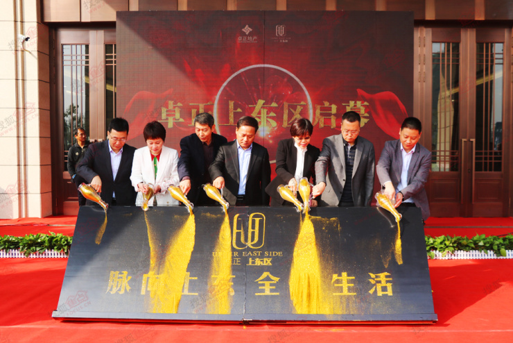 致辞过后,在现场来宾的瞩目下,卓正地产的领导与嘉宾共同开启卓正上东区启动仪式。随后,卓正控股集团总裁辛群来先生开启上东之大门,随着大门缓缓打开,卓正上东区营销中心正式面世!