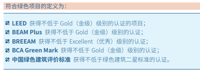 据了解,截至2020年12月31日,旭辉首次发行的总金额5亿美元的绿色债券已分配至合资格绿色项目,定义如下图所示,其中,LEED是由美国绿色建筑委员会(USGBC)开发的自愿性第三方建筑认证标准。