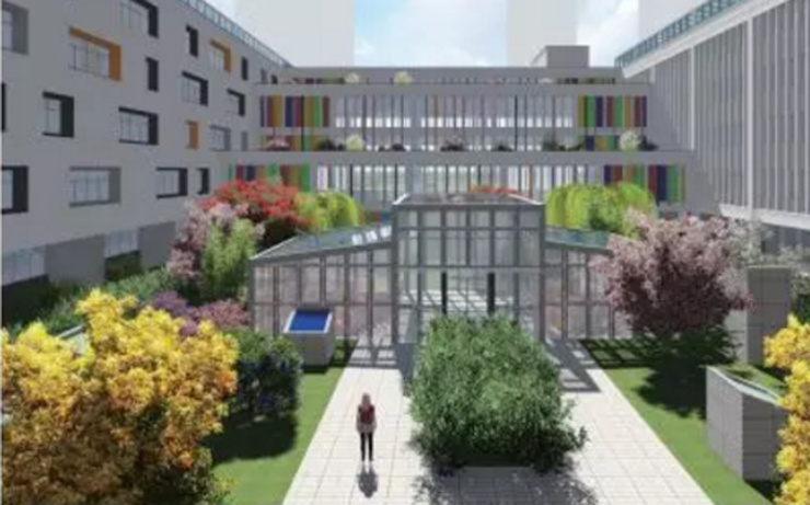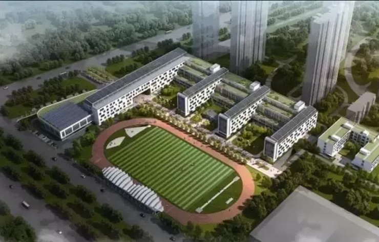 校区采用层层退台形式,使地面的绿化自然延续到屋顶,多层次的园林空间起到"环境育人"的作用。真正实现提高修养,陶冶情操,让孩子真正体会校园之美,成长之美。