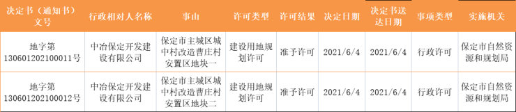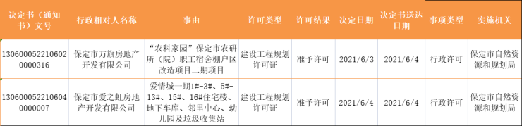 证件丨保定多个项目获发规划许可 含爱情城一期等