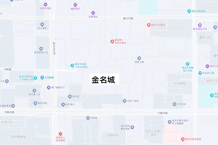 1.金名城:小区东至规划路,南至天鹅路,西至阳光北大街,北至风帆路。