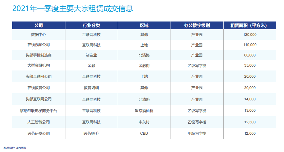 值得关注的是,互联网科技和金融企业持续扩张助力新增需求快速增长。除一季度已经签约的交易外,目前在谈的大宗租赁项目也以金融和互联网科技类企业为主,并可能会在未来的2-3个月内完成交易。