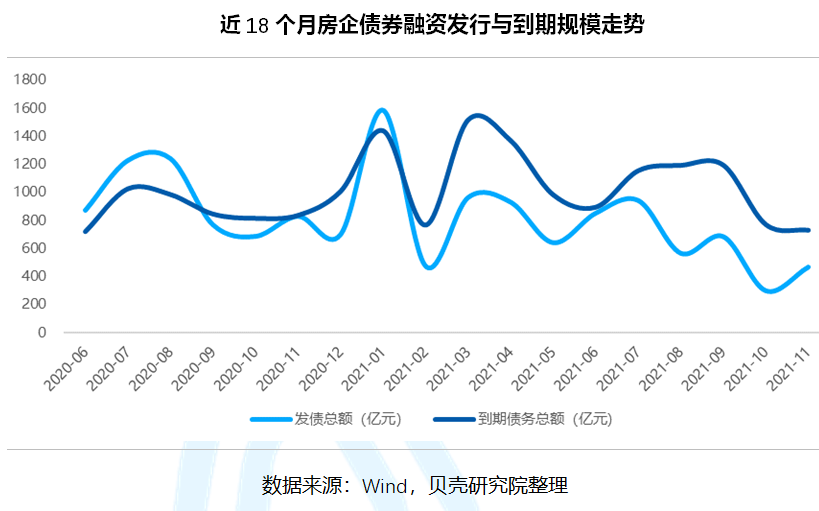 不过,11月境外仅成功发行2笔债券,发债规模2.58亿元美元,发债数量与规模同为年内单月最小值;规模环比下降83.6%,同比下降94.3%。“境外美元债市场低预期持续走高,内房企暴雷影响与信用下调危机仍在发酵,结合年末房企美元债余额不足,12月境外债预计维持低温。”贝壳研究院分析指出,“根据当前债券市场趋势,预计2021年发债规模将回落至万亿元之下。”