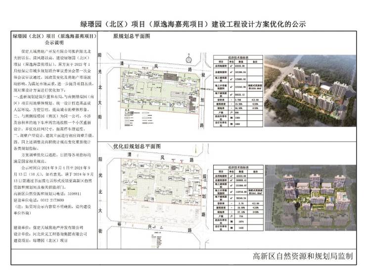 保定高新区绿璟园(北区)项目建设工程设计方案优化公示