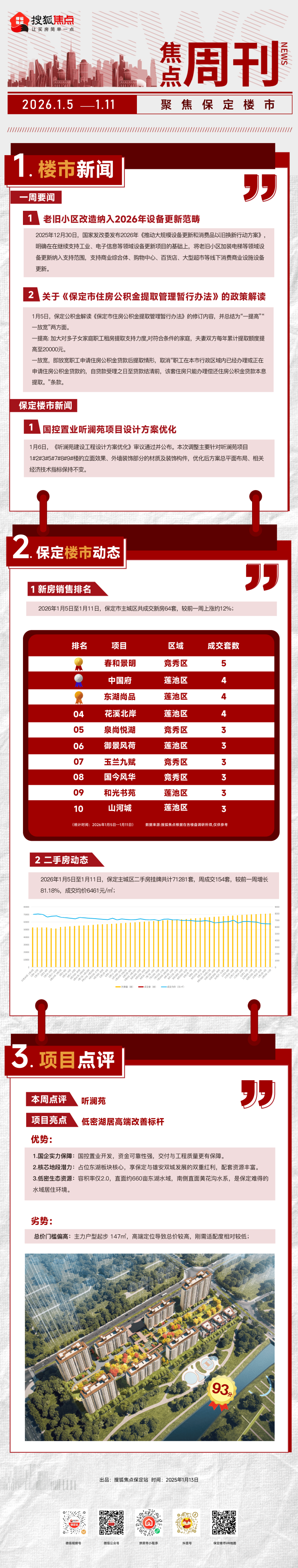 【焦点周刊】老旧小区改造纳入2026年设备更新范畴/上周新房成交64套(1.5—1.11)