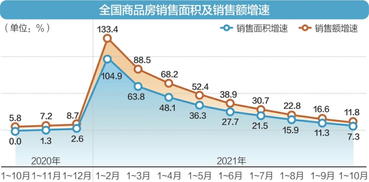 在“三道红线”约束下,估计政策调整的空间有限,直接融资难有改观,尤其是境外美元债的发行已经相当困难。根据贝壳研究院统计,2021年1~10月房企境内外债券融资累计约7993亿元,较2020年同期下降24%,金额规模减少2463亿元。1~10月累计降幅较今年前三季度进一步扩大。在金融机构“两条红线”限制下,金融机构的风险偏好一时难以改变。即便部分城市将明年初的房贷额度挪至今年底使用,扣除前期积压的按揭贷款规模,新增按揭贷款规模仍难显著提升。