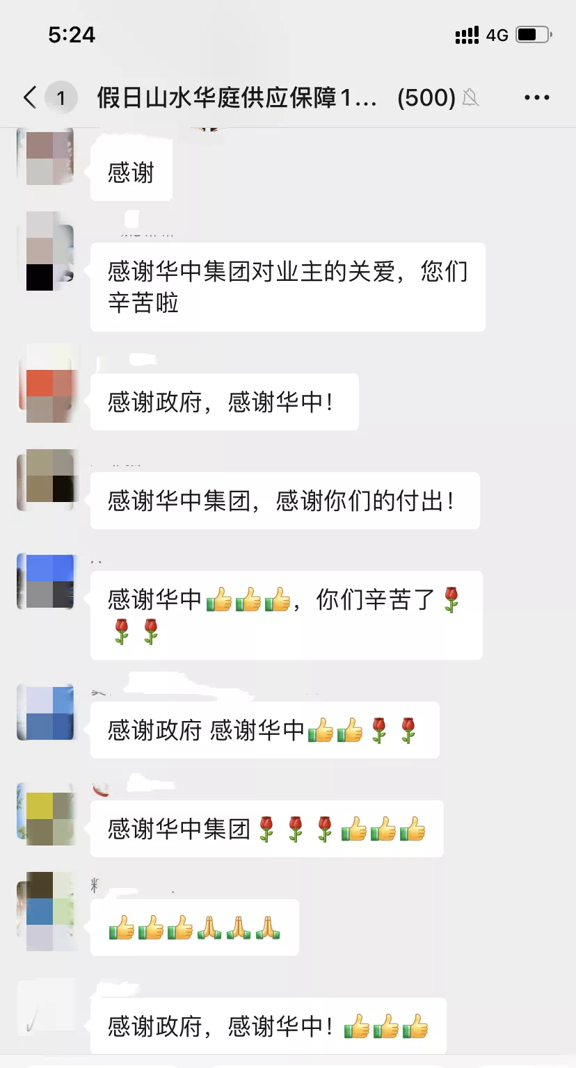 业主收到华中的慰问信和慰问物资,纷纷点赞,表示感谢: