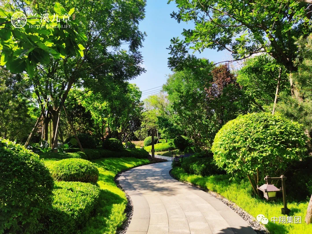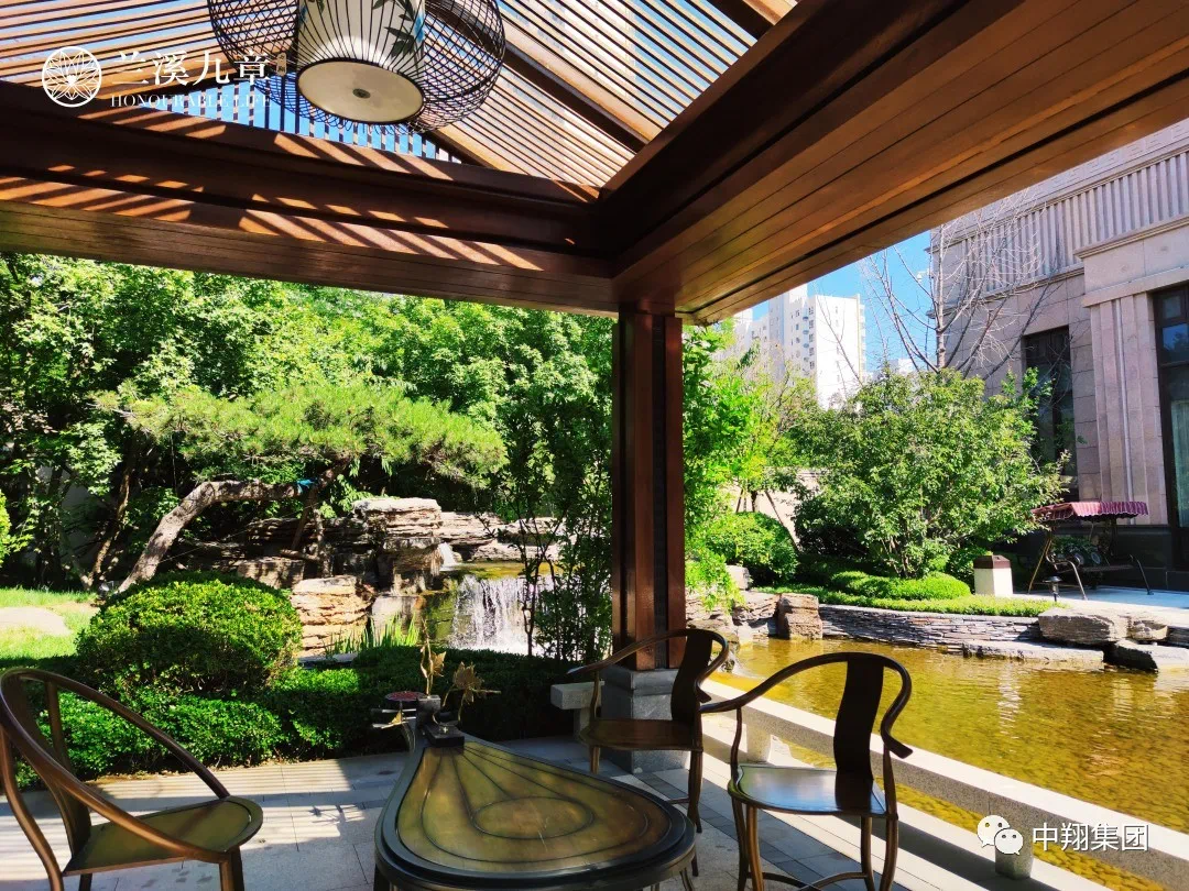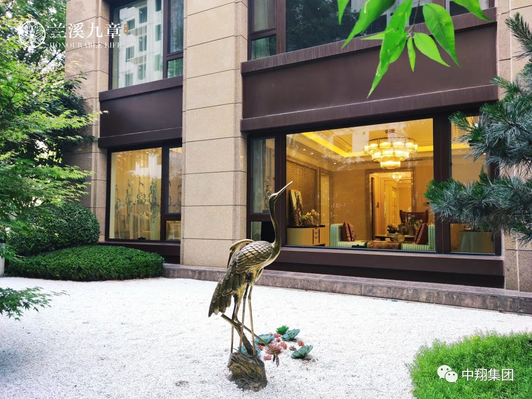兰溪九章塑造七重立体沉浸式园林:排名前列重草地、第二重时花、第三重灌木、第四重状木 、第五重大灌木、第六重小乔木、第七重:大乔木。以草地铺陈为基础,尽藏绿的灵动,叠石与山水花木相配,簇拥四季。整个园区绿化覆盖率80%以上,从深山移植价值昂贵、树龄悠久的水杉、古槐等珍稀树种,点景聚焦,增添古意雅然的神韵,构筑温雅而精灿的东方美学文化。构筑园中有园,景外有景,形成错层立体、文化内涵丰富的园林意境。