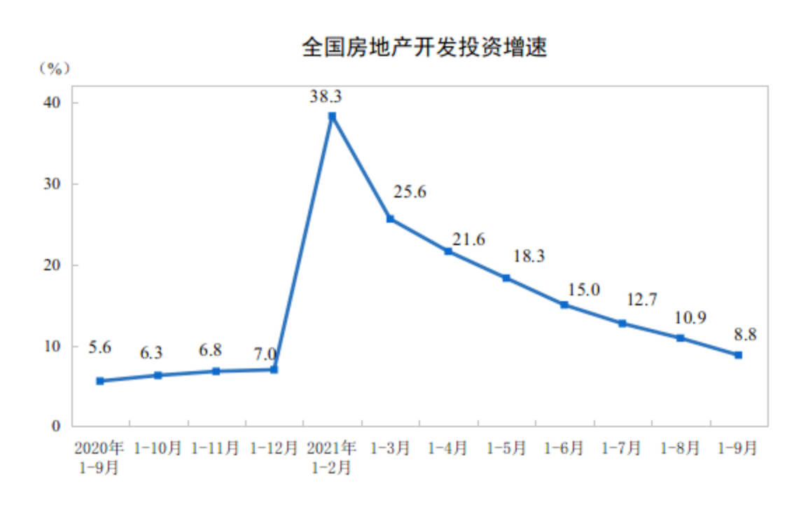 前9个月房地产开发投资增速8.8%,9月销售额下降15%