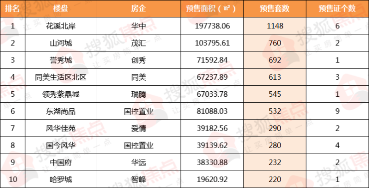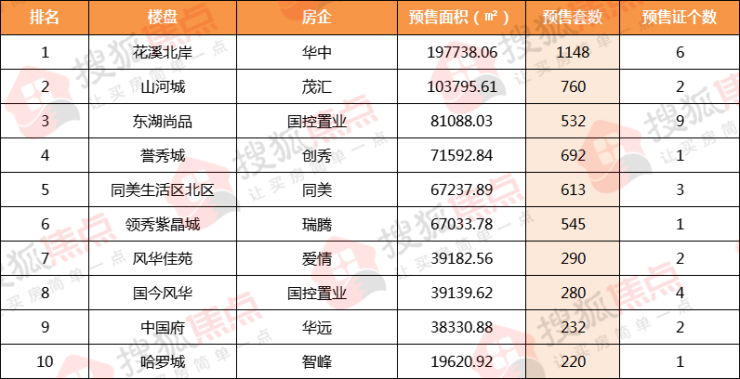 从项目来看,上半年花溪北岸共获发6张预售证件,以1148套位列上半年新增房源套数第一名;第二名山河城获发2张预售证件,新增房源760套;第三名是誉秀城获发1张预售证件,新增房源692套。