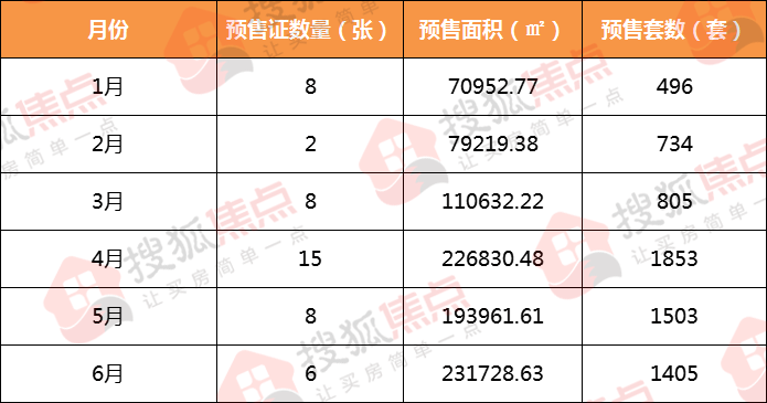从时间线来看,纵观2024上半年各月新房入市套数量,整体呈波浪式走势。4-6月新增预售房源面积和套数较多,其中4月供货达到上半年最高峰,4月新增预售证15张,新增预售面积226830.48㎡,新增预售套数1853套。