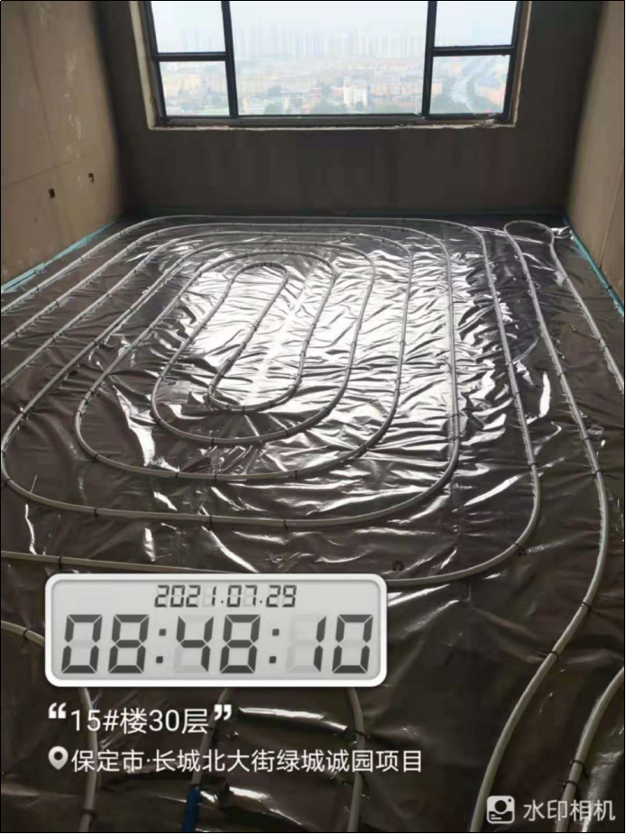 卫生间防水、抹灰完成,室内底层石膏,地暖完成90%