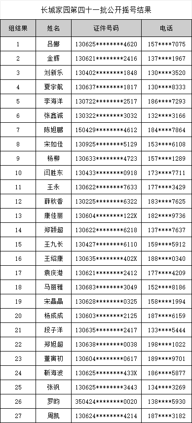 长城家园第四十一批公开摇号结果公示
