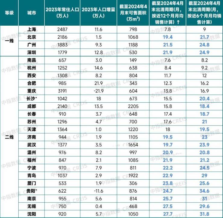 从已取预售证未售库存来看,根据中指数据,截至2024年4月末,50个代表城市商品住宅可售面积3.36亿平米,按近12个月月均销售面积计算,可售库存出清周期为20.6个月,已达到上一轮“去库存”以来出清周期的高点,其中,部分城市出清周期超36个月。若考虑广义库存(已取证可售库存+已开工未取证库存+未开工库存),不少城市库存去化周期或更长。在此情况下,地方政府未来有必要结合当地实际情况,切实落实以人定房、以房定地的要素联动机制,将增量土地供应与城市库存及实际住房需求挂钩,并加大存量土地盘活力度。但政策也需避免一刀切,因为当前城市内部的不同区域之间分化现象也较为严重,需要结合市场实际情况进行土地供应的合理规划。