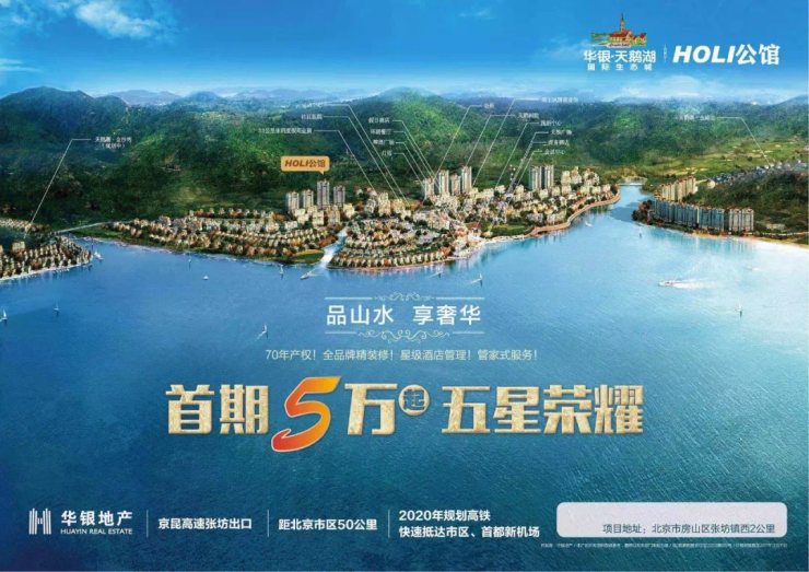 HOLI公馆隶属于华银(天鹅湖)国际生态城。作为一个山水生态小城,华银(天鹅湖)国际生态城是北京市场上排名前列个城镇级规划项目,目前已建成金海岸、金峪谷、西山廊桥区域,并且商业配套逐渐醇熟,10万㎡瑞士风情商业街和3.5公里山水休闲商业街等,目前都已经营业。