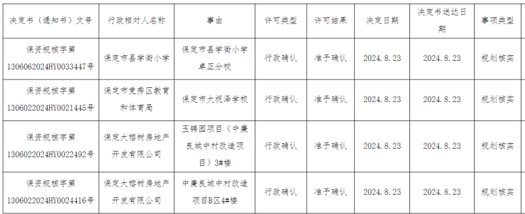 保定市县学街小学卓正分校、大祝泽学校等项目获规划核实