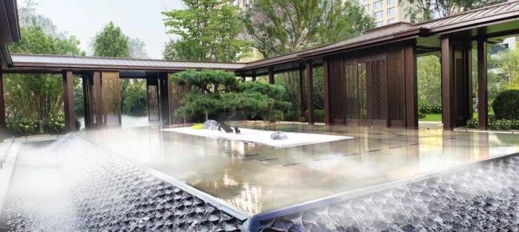 兰溪九章通过“府-庭-园”新中式府院,彰显出中国塔尖阶层的礼仪气度,以百年古城直隶总督府府院文化为根基,以“九章符纹”为核心元素,以大于75%的景观覆盖率,匠造1.2万平米恢宏园林景观,成就“一环、两轴、三进院、九花园”皇家归家礼法,依楼营造“雅、溪、鱼、荷、泉、树、瀑、花、趣”九大园境。三进院落层叠有序,九花园山水交织,府院礼序贯穿其中,从繁华归入静谧,让回家成为一场亲近自然、治愈心灵的旅行。
