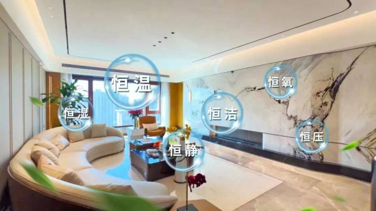 中翔集团从环境、水、食物、健康、能源、生活”六大人居维度进行淬炼,匠筑六恒【恒温 恒湿 恒氧 恒洁 恒压 恒静】健康科技体系。室内温度常年保持在 20-26℃,实现了冬天不用暖气,夏天不用空调,业主即可享受四季如春、空气清新、安静舒适的居住环境,同时减少了能源消耗。