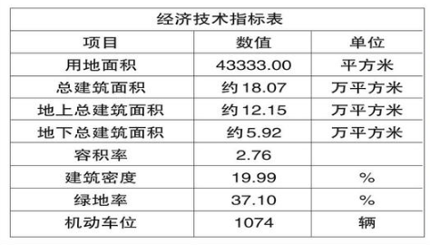 (5)指标调整。总建筑面积由约18.13万平方米减少为约18.07万平方米,地上建筑面积由约12.31万平方米减少为约12.15万平方米,地上计容建筑面积由12.12万平方米减少为11.96万平方米,地下建筑面积由约5.82万平方米调整为约5.92万平方米,容积率由2.798减少为2.76,建筑密度由19.56%调整为19.99%,绿地率由36.95%调整为37.10%。