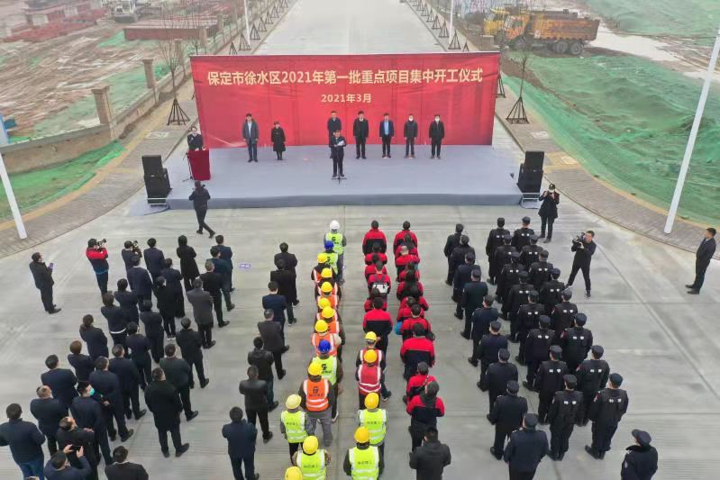3月20日上午,徐水区2021年排名前列批重点项目集中开工活动在徐水经济开发区举行。
