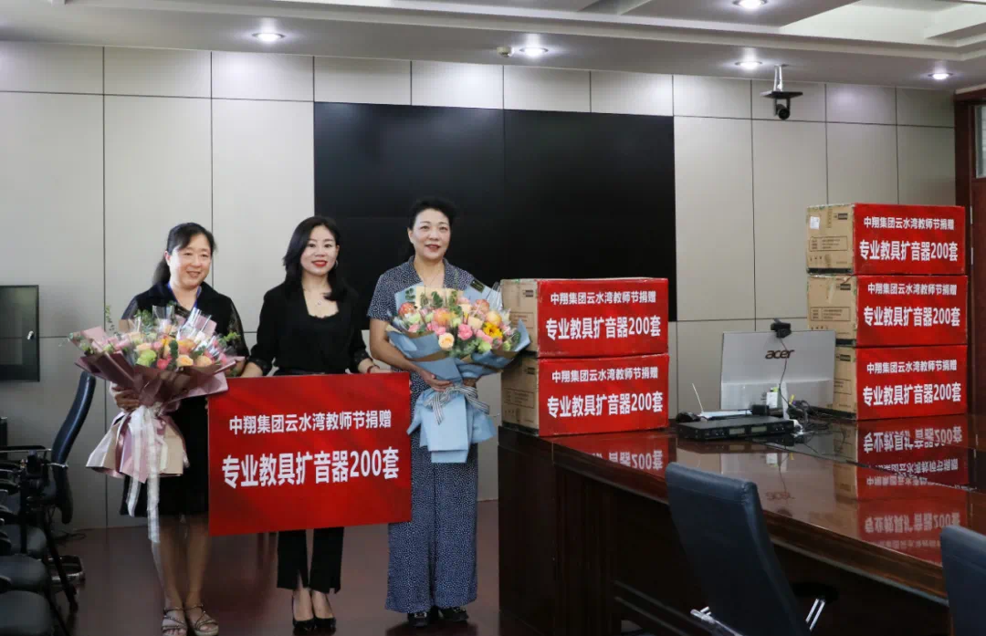 此次交流慰问活动中,中翔集团向保师附校捐赠了200件教学用具,并向保师附校校长、老师们送上了寓意“桃李满天下”的鲜花花束。李总代表中翔集团向学校全体教师致以节日祝福,并希望这些教具可以为老师的教学及学生们的学习带来有效帮助。