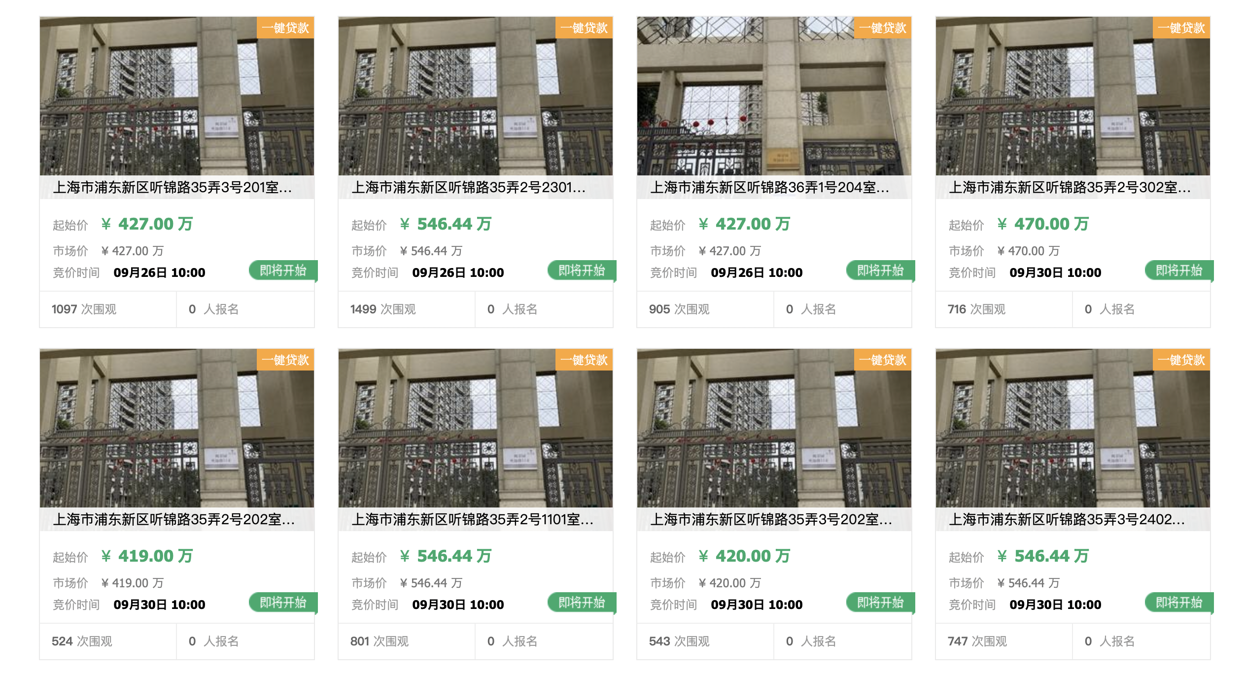 位于上海的多套房产及车位总起拍价达2.63亿元