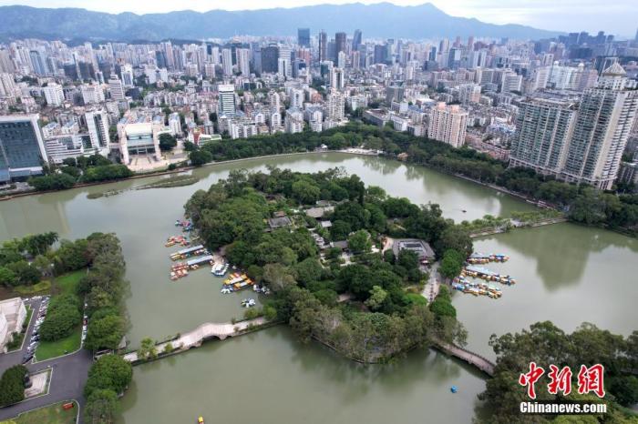 资料图为福州西湖周边楼房林立。(无人机照片) 中新社记者 王东明 摄